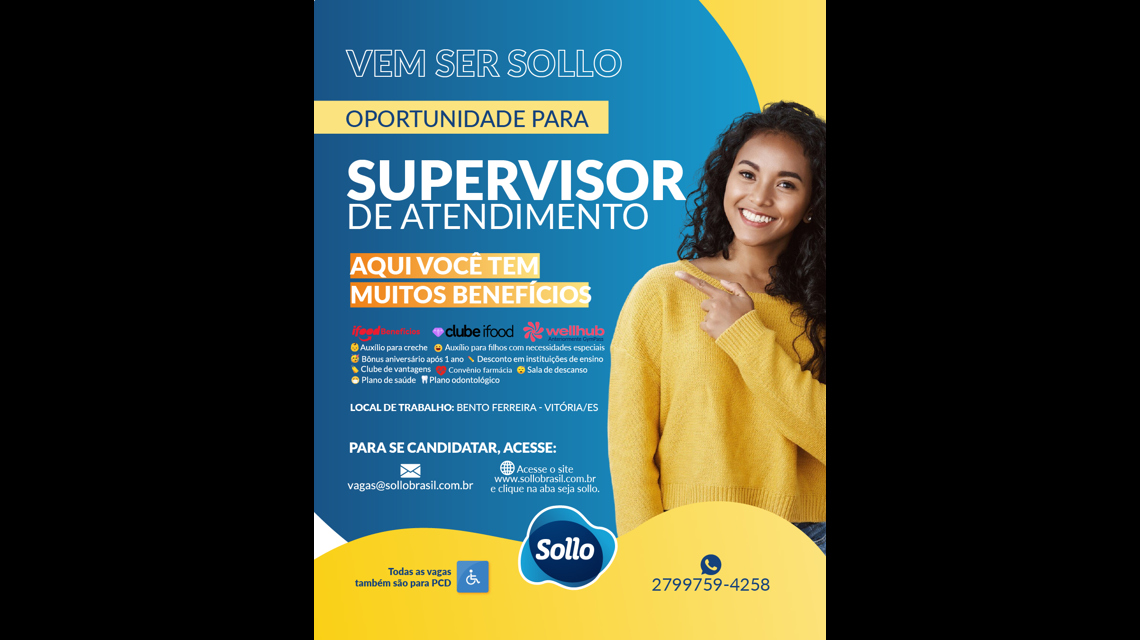 Vaga direcionada também ao público PCD.
